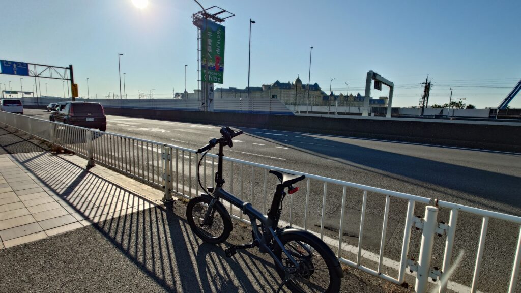 出発当初はディズニーランドを目指す方々の混雑が無い区間になったら輪行で千葉に戻るつもりだったんで、普通のズボンに仕事用のカバンで漕ぎ出したんですが、だんだん調子よくなっちゃって千葉まで行ってみたくなって、そのままこぎ続け気づいたら千葉まで帰ってました。